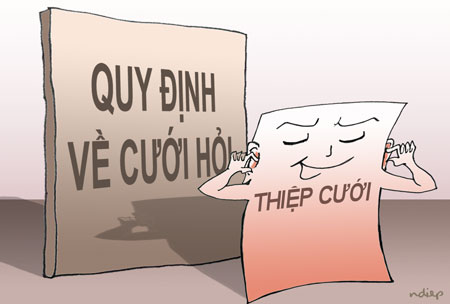 Kể ra, việc nghiêm cấm sử dụng cơ quan, trường học tổ chức đám cưới là đúng, nhưng quy định số lượng người dự đám cưới th́ can thiệp vào việc riêng của người khác. Tuy nhiên, đă là cán bộ, đảng viên th́ phải chấp hành, bởi v́ mục quy định này cũng xuất phát từ mục đích tốt, xây dựng nếp sống văn minh.