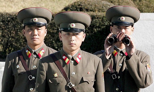 Các binh sĩ Triều Tiên tại làng đ́nh chiến Panmunjom thuộc khu phi quân sự (DMZ)