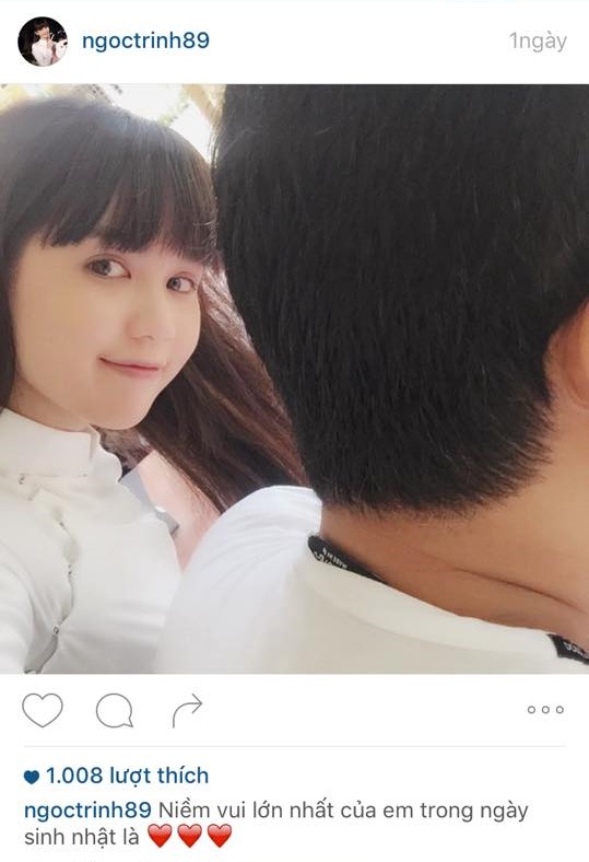 Mới đây nhất, Ngọc Trinh bất ngờ chia sẻ hình ảnh bạn trai cô đến tận trường quay bộ phim "Vòng eo 56" tại Đồng Tháp để chúc mừng sinh nhật bạn gái. Theo đó, bà chủ spa xinh đẹp cũng không ngần ngại chia sẻ niềm vui này trên trang cá nhân của mình. Cả hai chụp hình "tự sướng" tình tứ và tất nhiên gương mặt bạn trai cô vẫn luôn được giấu kín.