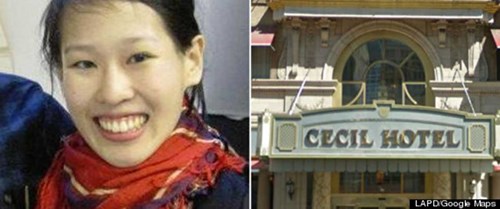 Elisa Lam (trái) đă lựa chọn khách sạn Cecil Hotel ở Los Angeles (phải) làm nơi nghỉ chân.