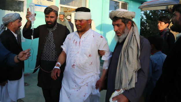 Một người đàn ông bị thương trong vụ Taliban tấn công rocket ở Ghazni vào cùng ngày Taliban tuyên bố rút khỏi Kunduz - Ảnh: AFP