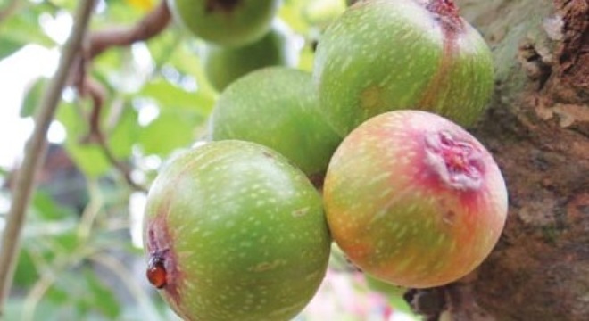 Lá sung thường bị sâu Psyllidae ký sinh gây ra những mụn nhỏ gọi là vú sung.