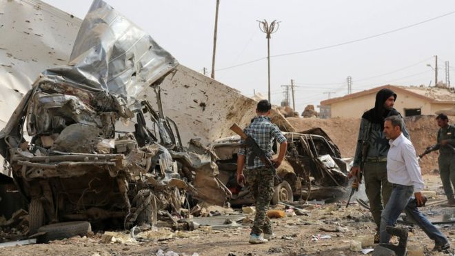Đại tá Steve Warren, phát ngôn viên Lực lượng liên quân do Mỹ đứng đầu, phát biểu với báo giới ngày hôm qua rằng Lực lượng Dân chủ Syria (lực lượng nổi dậy) đă giành lại một diện tích khoảng 225 km2 từ tay phiến quân IS.