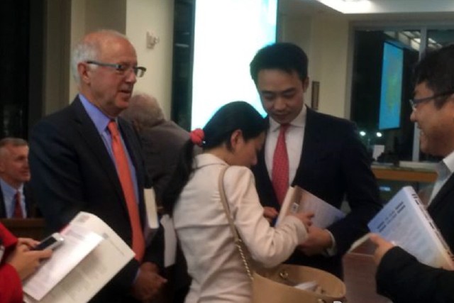 Bạc Qua Qua (phải) và Chủ tịch Ủy ban quốc gia Mỹ về quan hệ Mỹ-Trung Quốc. Ảnh: VOA