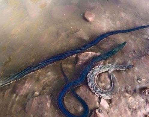 Sinh vật kỳ dị 'nửa rết nửa rắn' xuất hiện vào sáng sớm và thường bơi thành đàn.