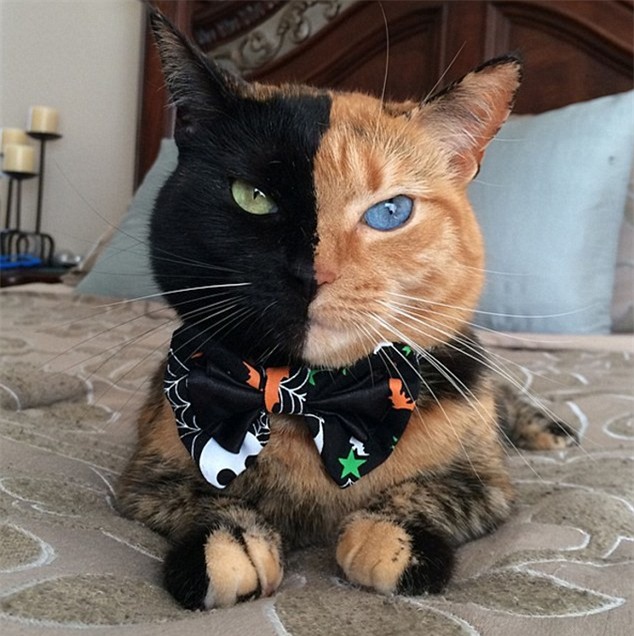 Sở hữu vẻ đẹp “trời ban”, cô nàng mèo Venus sống cùng cặp vợ chồng trẻ tại North Carolina (Mỹ) được người dân chú ý. “Nàng” có khuôn mặt được chia thành 2 màu và con mắt cũng mang 2 màu khác nhau hoàn toàn.