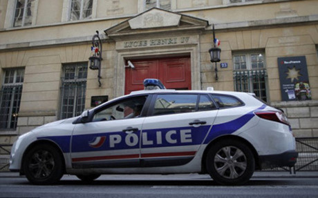 Ô tô cảnh sát đỗ bên ngoài khuôn viên trường Lycee Henri IV ở Paris. (Ảnh: Reuters)
