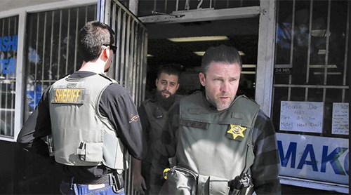 Cảnh sát đến cửa hàng sửa xe để bắt giữ Bac Duong. Ảnh: Los Angeles Times