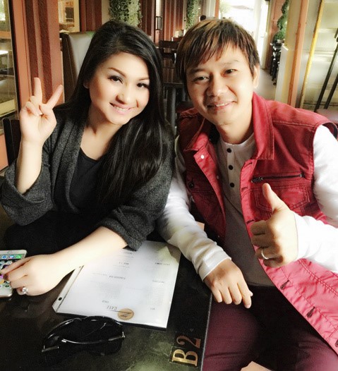 Vì mới sang Mỹ nên Quốc Huy có nhiều thời gian, anh bay sang bang California để gặp gỡ các đồng nghiệp. Trong ảnh, anh chụp hình cùng Bằng Kiều khi các nghệ sĩ tụ tập đầu năm.