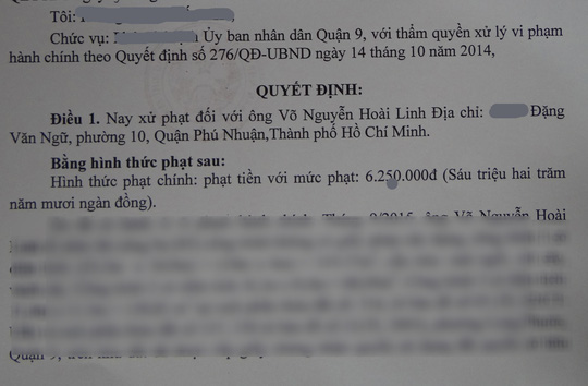 Tuy nhiên, một điều khó hiểu, sau khi khởi công xây dựng, 6 tháng sau (tức ngày 16-2), UBND quận 9 mới ban hành quyết định xử phạt hành chính về hành vi xây dựng không phép. Ngay sau đó, ngày 19-2, người đại diện của NS Hoài Linh đă đến kho bạc nhà nước Quận 9 để nộp phạt, số tiền hơn 6,2 triệu đồng.