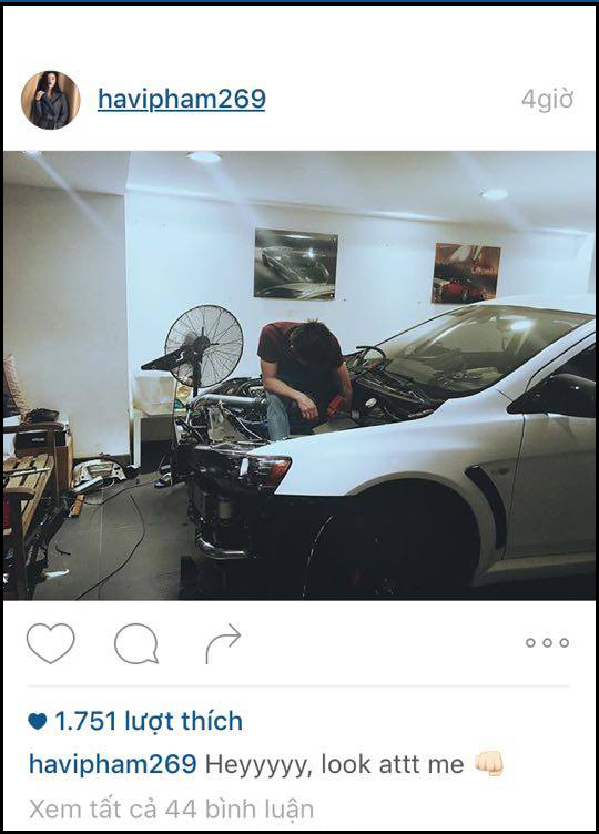 Hạ Vi từng đăng ảnh Cường Đô La sửa xe trên Instagram và cô cũng mới xóa