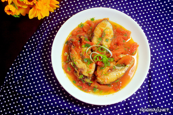 - Chan nước sốt lên đĩa cá đã chiên và ăn nóng.