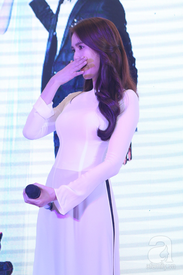 Ngọc Trinh diện áo dài trắng kín đáo trong buổi ra mắt phim về cuộc đời mình