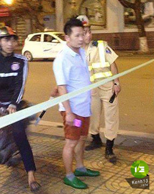 Hình ảnh Bằng Kiều đứng cạnh cảnh sát giao thông tại Hà Nội được đăng tải tối qua.