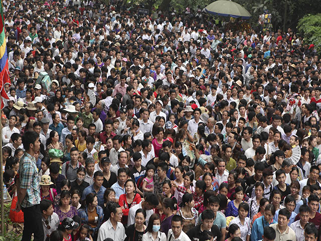 Khoảng 9h nay, ngay sau khi Ban tổ chức tiến hành xong các nghi lễ dâng hương trên núi Nghĩa Lĩnh, lập tức dòng người cùng đổ dồn lên đền Thượng gây ra cảnh tắc nghẽn nghiêm trọng. Để thoát khỏi đám đông ùn tắc, một số du khách đã bất chấp nguy hiểm trèo rào leo men theo sườn núi.