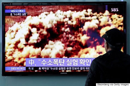 Người dân Hàn Quốc theo dơi thông tin về vụ thử hạt nhân lần 4 của Triều Tiên ngày 6/1. Ảnh: Getty