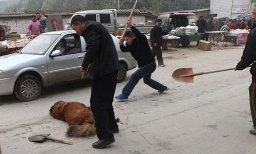 Mạng xã hội Trung Quốc từng có ảnh cảnh sát Tứ Xuyên đập chết chó. Thành phố Thạch Gia Trang, tỉnh Hà Bắc cũng có cảnh đám đông gồm dân thường và cảnh sát đánh đuổi hai con chó ngao Tây Tạng đến chết. Hai con chó này của một người dân địa phương nuôi để chăn cừu.