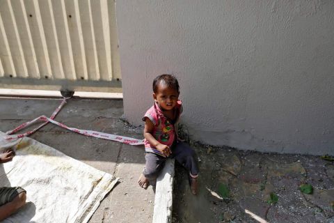 "Tôi phải buộc con bé lại, để nó không chạy ra đường. Con trai đầu của tôi mới 3 tuổi rưỡi nên nó không thể trông con bé" Kalara (23 tuổi) nói với Reuters.