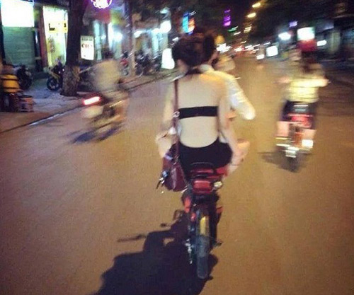 Thiếu nữ khoe trọn lưng trần trên phố Bà Triệu