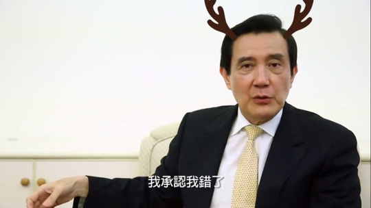 “Tôi thừa nhận tôi đã sai. Tôi sẵn sàng chịu phạt” – ông Mã nói trong khi đầu được vẽ thêm cặp gạc hươu kiểu hoạt hình.