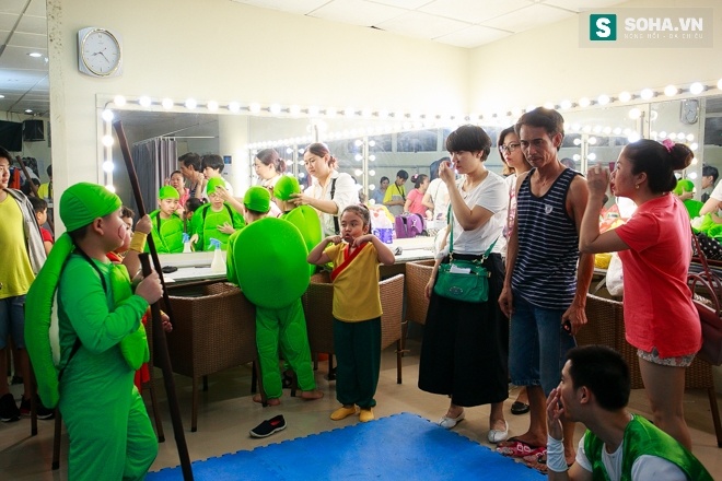 Từ 19h30, cả ê-kip đã bắt đầu làm việc. Các diễn viên được diện trang phục diễn mới và được nhận đạo cụ