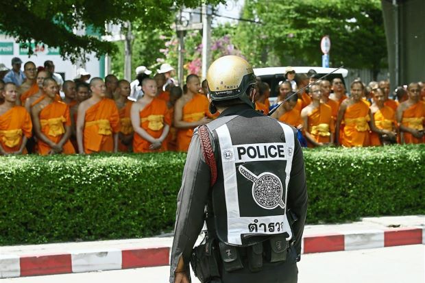 Cơ quan điều tra đặc biệt (DSI) đã huy động hơn 2200 binh sĩ và cảnh sát để bao vây toàn bộ ngôi chùa Dhammakaya ở Pathum Thani, phía bắc thủ đô Bangkok, để bắt sư trụ trì Phra Dham*machayo. Sư trụ trì bị cáo buộc tham nhũng.