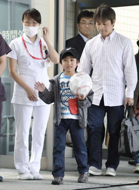 Cậu bé Yamato vẫy tay chào mọi người ngay khi bước ra viện.