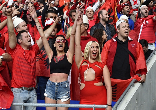 Những nữ CĐV Albania tiếp tục bốc lửa trên khán đài trong trận đấu cuối cùng bảng A Euro 2016 khi đội bóng của họ đánh bại Romania với tỷ số 1-0 qua đó đi vào lịch sử Euro.