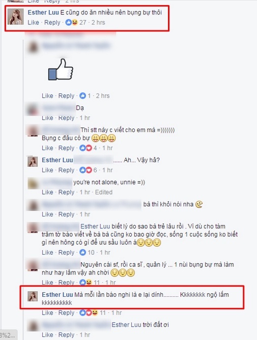 Status có nội dung khá giống cách trả lời của Hari Won với mọi người. Sự thật về chiếc bụng nhô ra "bất thường" của Hari Won chỉ do cân nặng của nữ ca sĩ này, chứ không hề có việc mang bầu.
