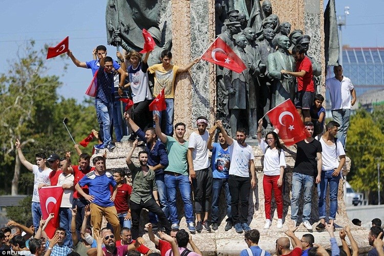 Dân chúng Thổ Nhĩ Kỳ vui mừng sau khi cuộc đảo chính quân sự thất bại. Ảnh Reuters