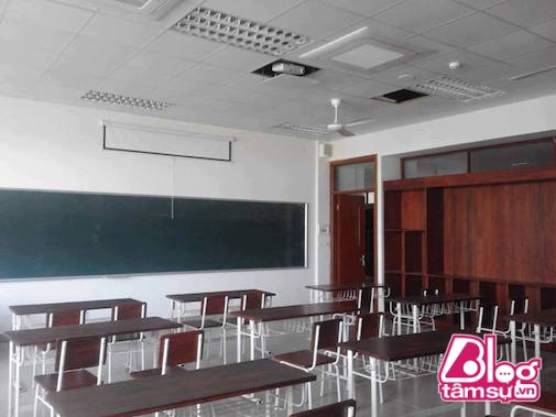 - Một phòng học có tận 4 cái điều hòa. Nói chung là điều hòa khắp mọi nơi mà là điều hòa tổng giống trung tâm thương mại.
