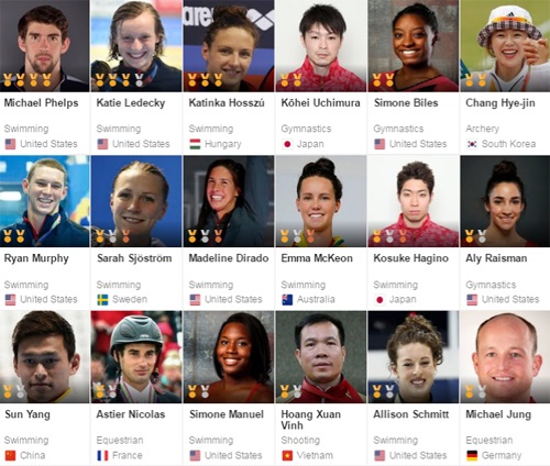 Xuân Vinh nằm ở top đầu bảng vàng các VĐV dự Olympic 2016. Bảng cập nhật tính đến ngày 11/8 theo giờ Brasilia.