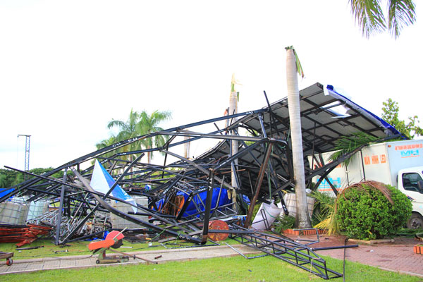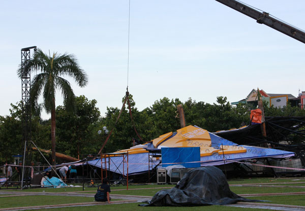 Ghi nhận tại hiện trường, toàn bộ các khung sắt lắp ráp, thanh và miếng sắt cong vẹo, đổ ngã. Nghiêm trọng là bức tường sắt mang biểu tượng bia Tiger đổ sập về phía đông, đè lên một chiếc xe tải chở thiết bị của đơn vị tổ chức sự kiện, choán hết lối đi lại của con đường phía sau Quảng trường.