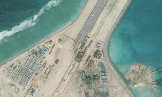 Sân bay trái phép do Trung Quốc xây dựng trên đá Subi, thuộc quần đảo Trường Sa của Việt Nam. Ảnh: Reuters.