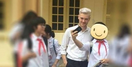 Trong đó, điểm trường THCS Đống Đa (Hà Nội) gây chú ý trên các diễn đàn khi có sự xuất hiện của một thầy giáo ngoại quốc điển trai, sở hữu mái tóc sáng màu.