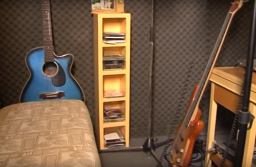 Điều đặc biệt khi ghé thăm pḥng ngủ của Lam Trường, ai cũng sẽ bất ngờ bởi nơi anh gọi là “pḥng ngủ” thực chất lại là pḥng thu âm. Căn pḥng được trang bị đầy đủ và thiết kế hiện đại chẳng kém ǵ pḥng chụp h́nh. Anh chàng nghệ sĩ hết ḿnh v́ công việc này c̣n chia sẻ rằng, v́ luôn làm việc cả ngày trong pḥng thu nên cứ khi nào mệt th́ anh ngủ luôn bên trong.