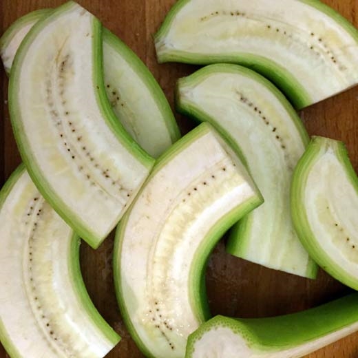 – Sau khi tước bỏ vỏ ngoài rồi ngâm vào nước cho bớt nhựa và chát, bạn đem chuối xanh thái lát mỏng, phơi khô và nghiền thành bột.