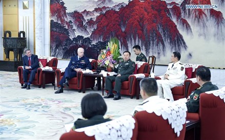 Phó Chủ tịch Quân ủy trung ương Trung Quốc Phạm Trường Long gặp Tư lệnh không quân Australia Marshal Mark Binskin tại Bắc Kinh ngày 12.10.