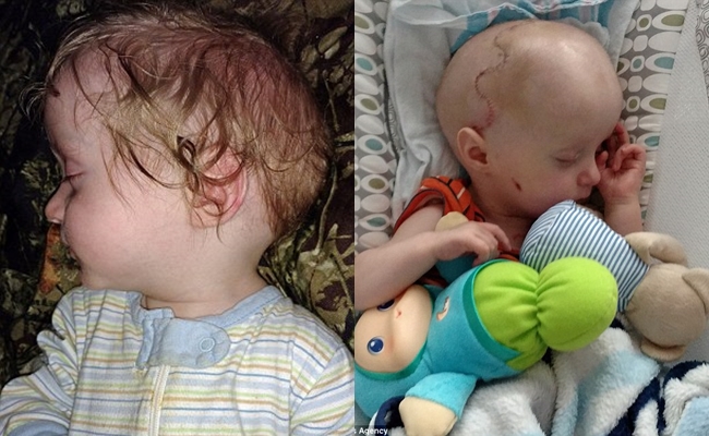 Đó chính là bé trai Caleb Torres 9 tháng tuổi đến từ bang Ohio, Mỹ. Được biết, khi sinh ra, bé trai này đã có phần đầu dẹt và sẽ ảnh hưởng nghiêm trọng tới quá trình phát triển của bé sau này. Thế nhưng, các bác sĩ đã đưa ra quyết định mạo hiểm, đập hộp sọ của em để phẫu thuật ghép lại. Thật là một điều kỳ diệu có thật trong đời thực.