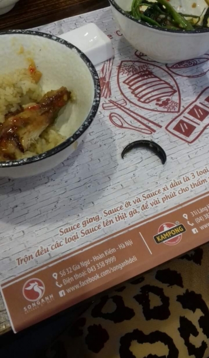 Theo lời kể của chị Q., trưa ngày 14/10/2016, chị Q. cùng bạn đến ăn trưa tại Nhà hàng cơm gà Kampong (số 31i Láng Hạ, Đống Đa, Hà Nội). Tại đây, chị Q. cùng bạn ḿnh gọi hai suất cơm gà và một đĩa rau muống xào tỏi. Sau khi nhân viên phục vụ mang đồ ăn ra, vừa tḥ đũa vào đĩa rau muống xào, chị Q. và bạn ḿnh đă phát hoảng khi phát hiện 1 con đỉa dài gần 5cm nằm lẫn trong đĩa rau.