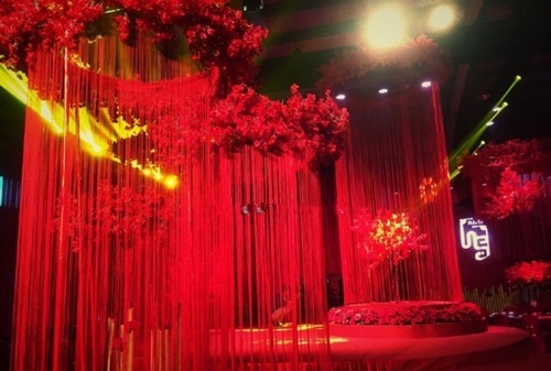 Phía sân khấu chuẩn bị cũng thật lộng lẫy, sắc đỏ bao trùm toàn bộ không gian. Những bàn tiệc sang trọng cũng được bày ra.