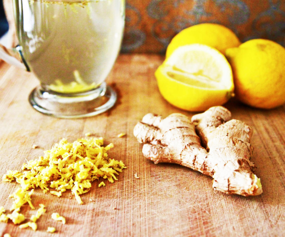 Nguyên liệu: 1 quả chanh, 1 củ gừng, một chút muối hạt.