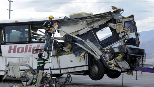 Vụ tai nạn xảy ra ở xa lộ 10, trên tuyến đường cao tốc phía Nam bang California (Mỹ) khiến ít nhất 13 người thiệt mạng và hơn 30 người khác bị thương. ngay gần thị trấn nghỉ dưỡng Palm Springs sáng 23/10 (giờ địa phương). Hiện chưa rõ vì sao hai xe đâm vào nhau. Chiếc xe buýt đang hướng tới Los Angeles.