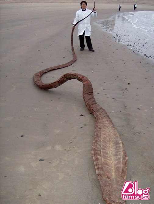 Các ngư dân tại Nhật Bản đã hoảng sợ khi bất ngờ phát hiện ra một con quái thú kỳ lạ bên bờ biển. Các cơ quan chức năng đã có mặt tại hiện trường để kiểm tra, khi lại gần thì họ phát hiện đây chỉ là phần da đã lột của con quái thú. Tuy nhiên với hình dáng đáng sợ và phần đầu “không giống ai” thì nó vẫn khiến nhiều người kinh hãi.