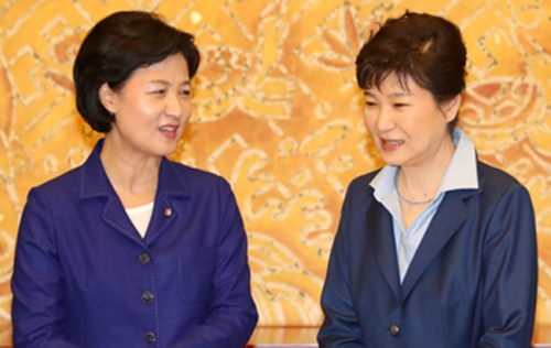 Lãnh đạo đảng Dân chủ đối lập Choo Mi-ae và Tổng thống Hàn Quốc Park Geun-hye.