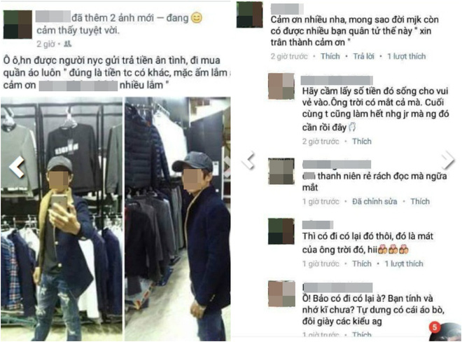 Tuy nhiên, câu chuyện tưởng chừng như kết thúc th́ chàng trai lại đăng tải lên trang cá nhân với h́nh ảnh mua áo mới kèm theo nội dung: "Ô ô, hôm nay được người yêu cũ gửi trả tiền ân t́nh, đi mua quần áo luôn. Đúng là tiền t́nh cảm có khác, mặc ấm lắm à. Cảm ơn K.K.K lắm à". Đến đây, dân mạng đă chính thức "chào thua" v́ cách hành xử của chàng trai.