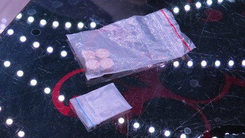 Kiểm tra các phòng, cơ quan chức năng phát hiện và thu giữ nhiều viên nén màu hồng cùng nhiều túi nilon chứa tinh bột màu trắng nghi là ma túy. Ngoài ra còn hai lọ thủy tinh màu đen chứa dung dịch nghi ma túy cùng nhiều bình hút shisa.