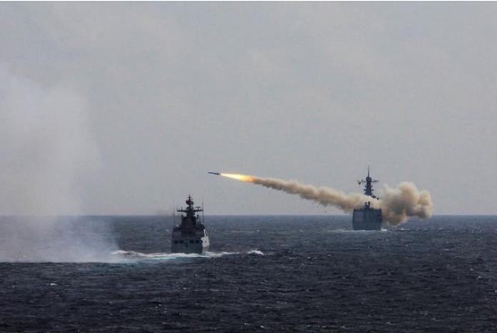 Ngày 1/8/2016, ba hạm đội lớn của Hải quân Trung Quốc tiến hành tập trận bắn đạn thật ở biển Hoa Đông. Trong h́nh là tàu Trịnh Châu bắn tên lửa đối hải. Ảnh: QQ
