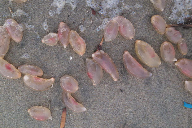Những người đi biển đã thực sự bị sốc khi phát hiện những sinh vật lạ với hình thù bí ẩn, trông giống như ‘trứng của người ngoài hành tinh’ trôi dạt vào bờ biển Huntington.