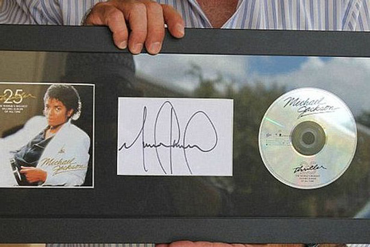 Kỷ vật của Michael Jackson (dưới) và áo bóng rổ của Michael Jordan.